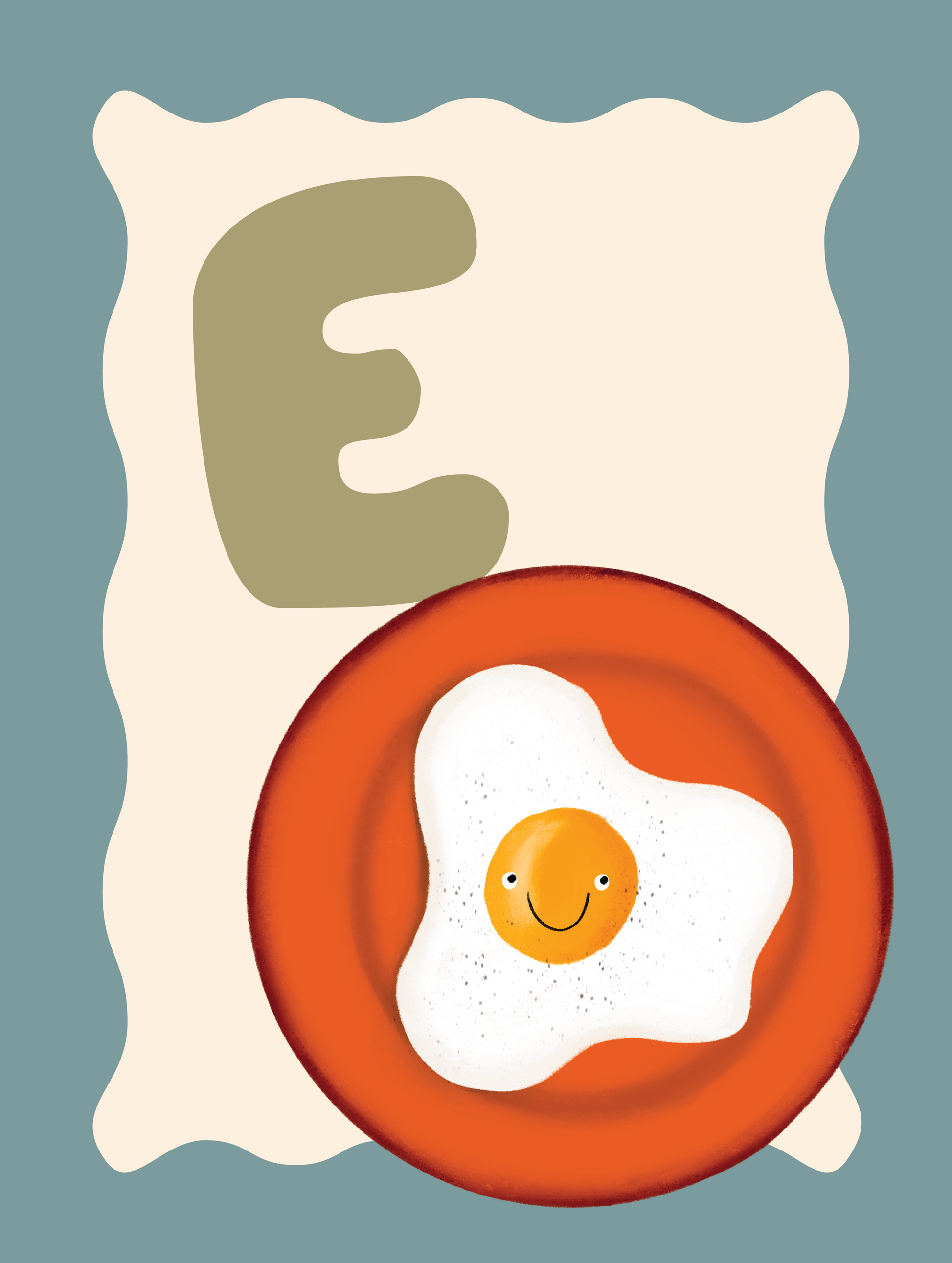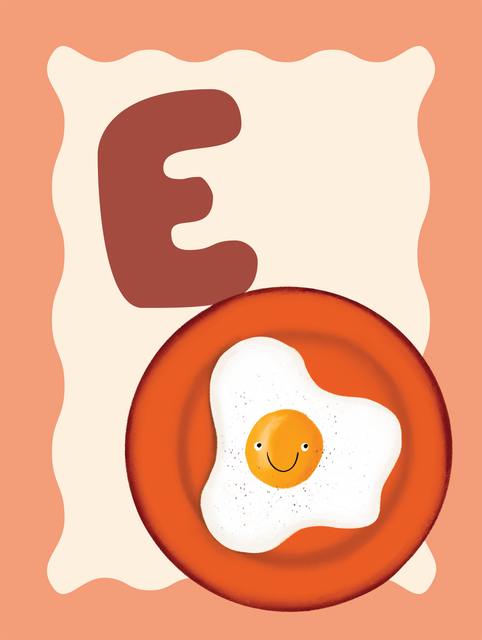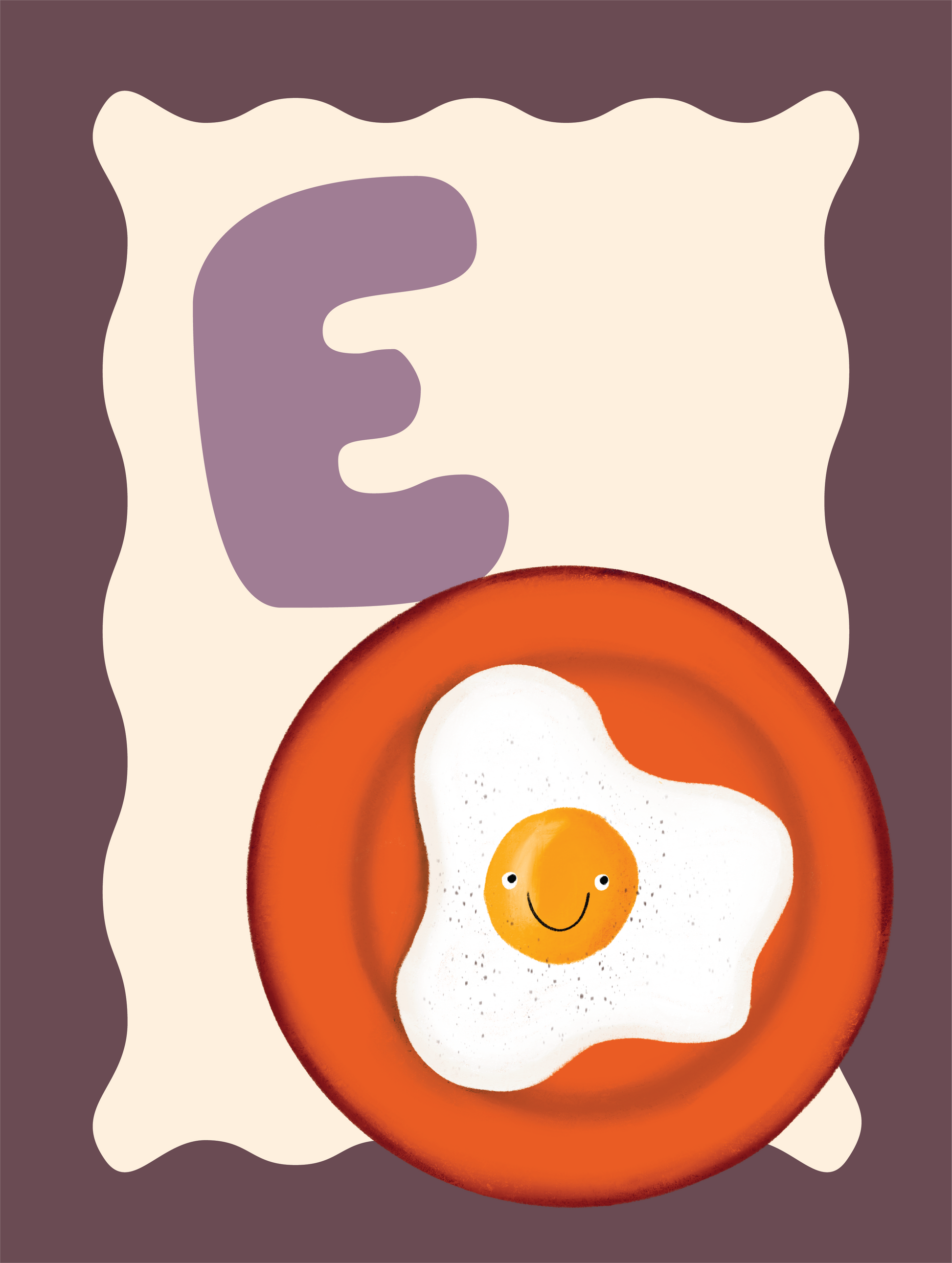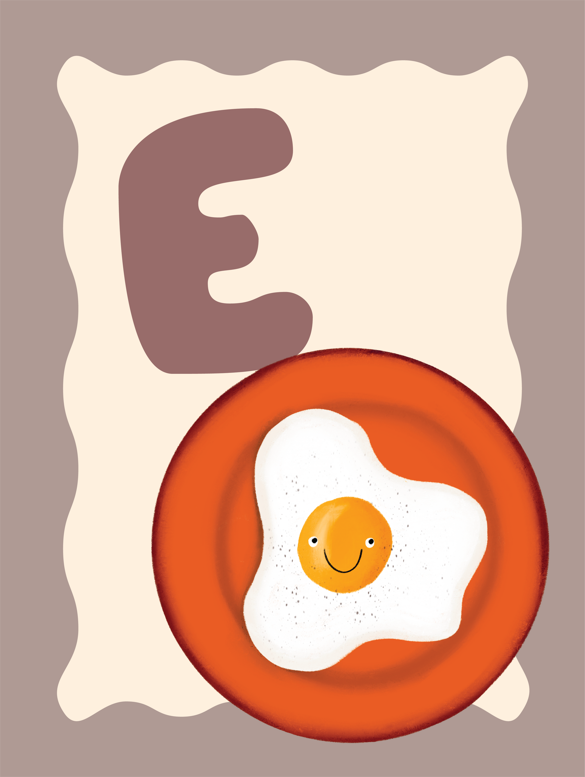 E is van ei! Een vrolijk, speels spiegeleitje voor kids met humor.