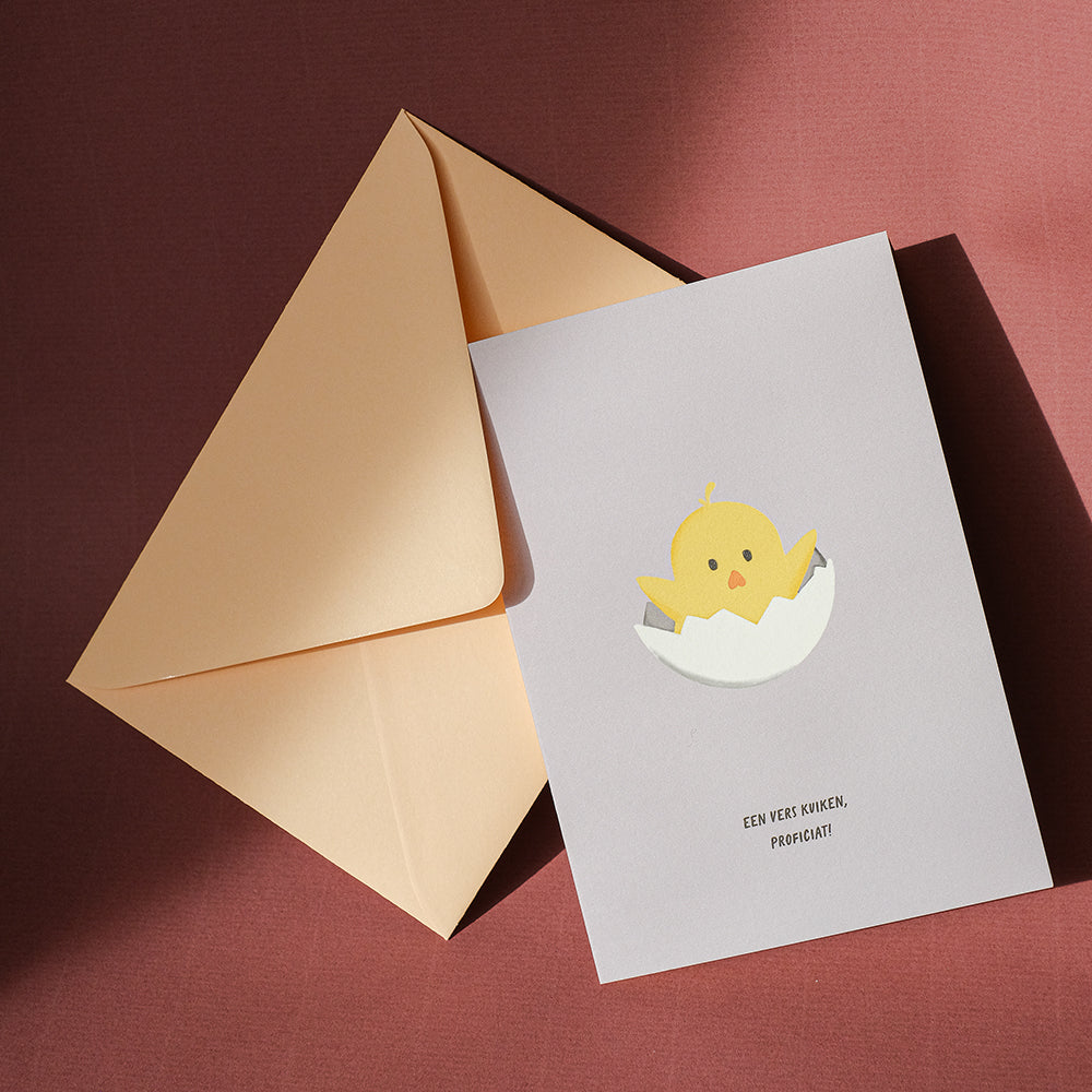 Dubbele wenskaart, duurzaam gedrukt op ongestreken papier. Inclusief peach envelop.