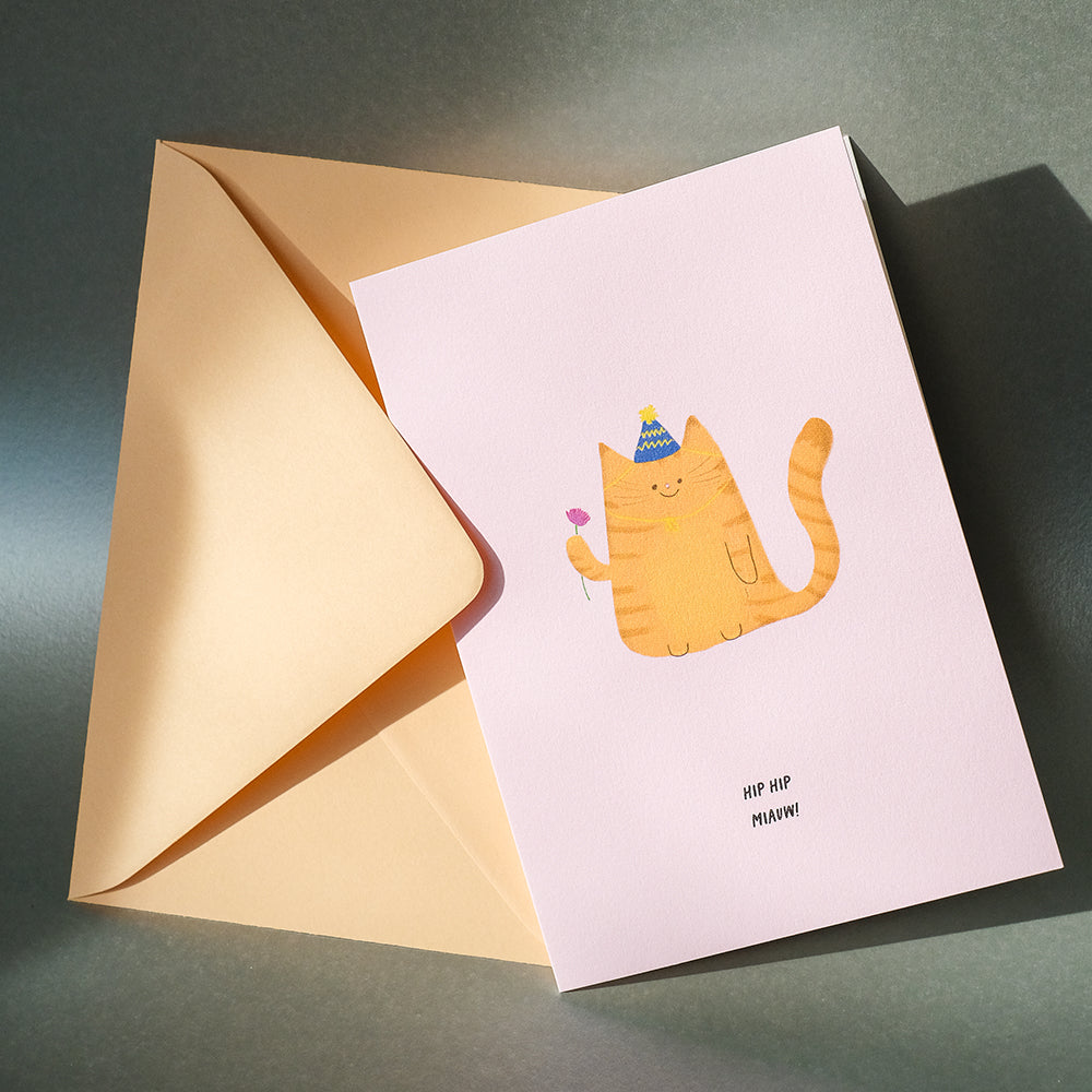 Dubbele wenskaart, duurzaam gedrukt op ongestreken papier. Inclusief peach envelop.