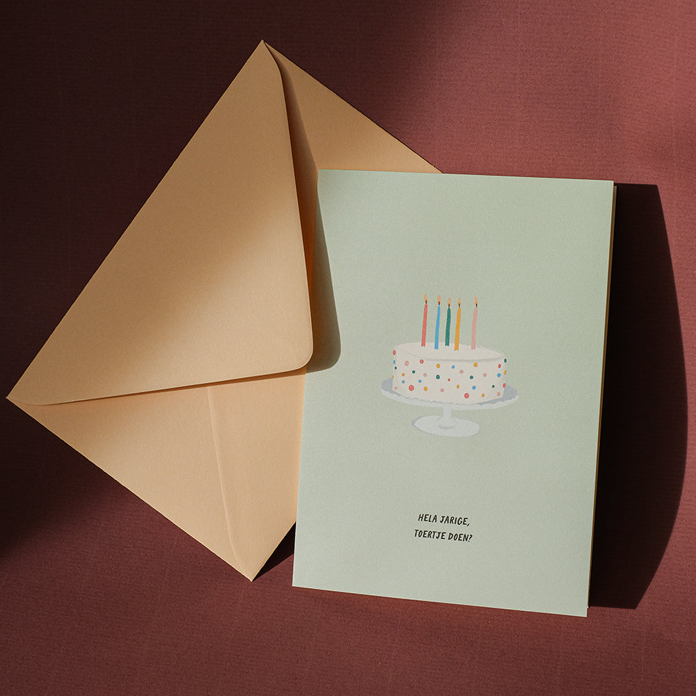 Dubbele wenskaart, duurzaam gedrukt op ongestreken papier. Inclusief peach envelop.
